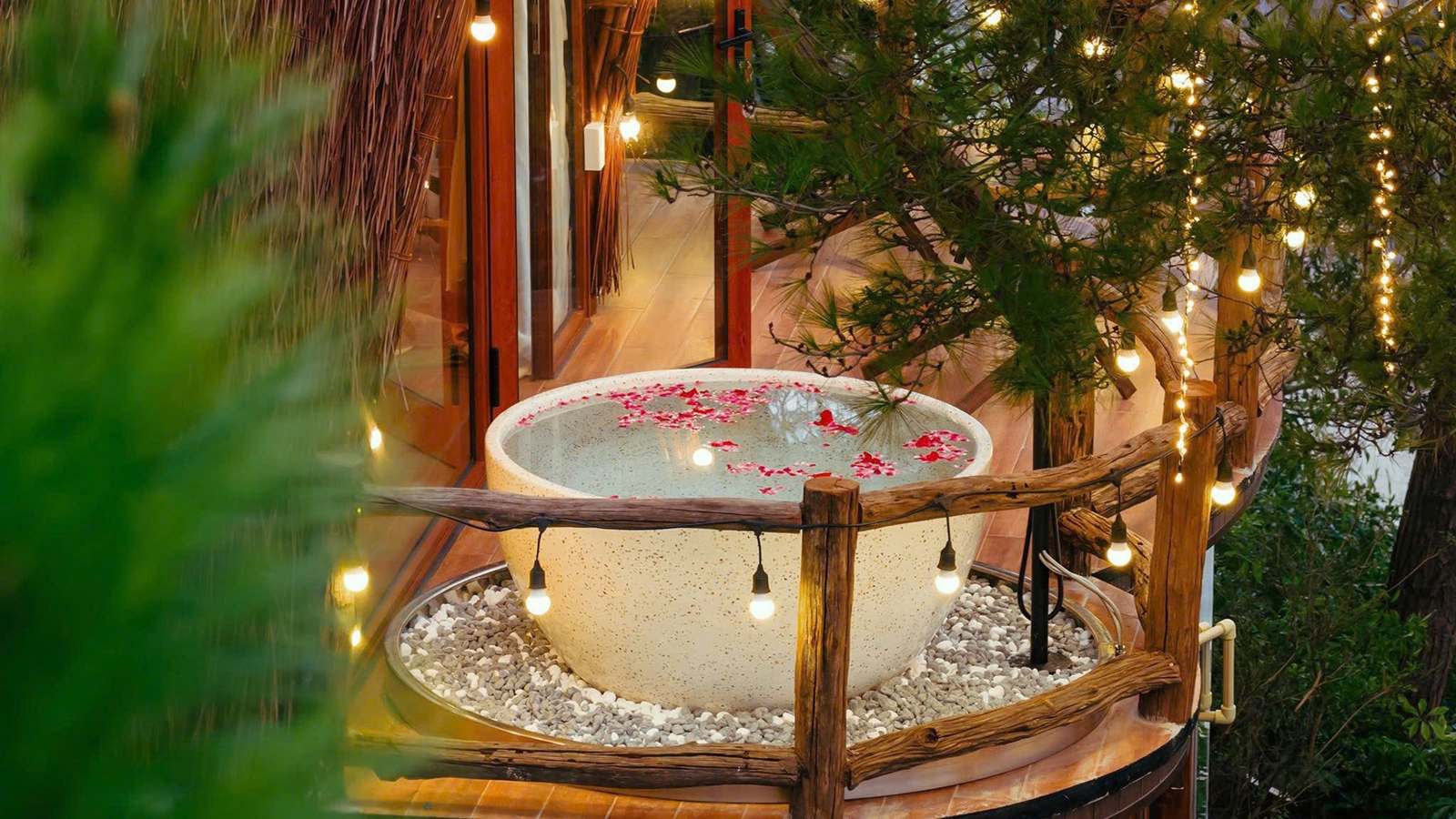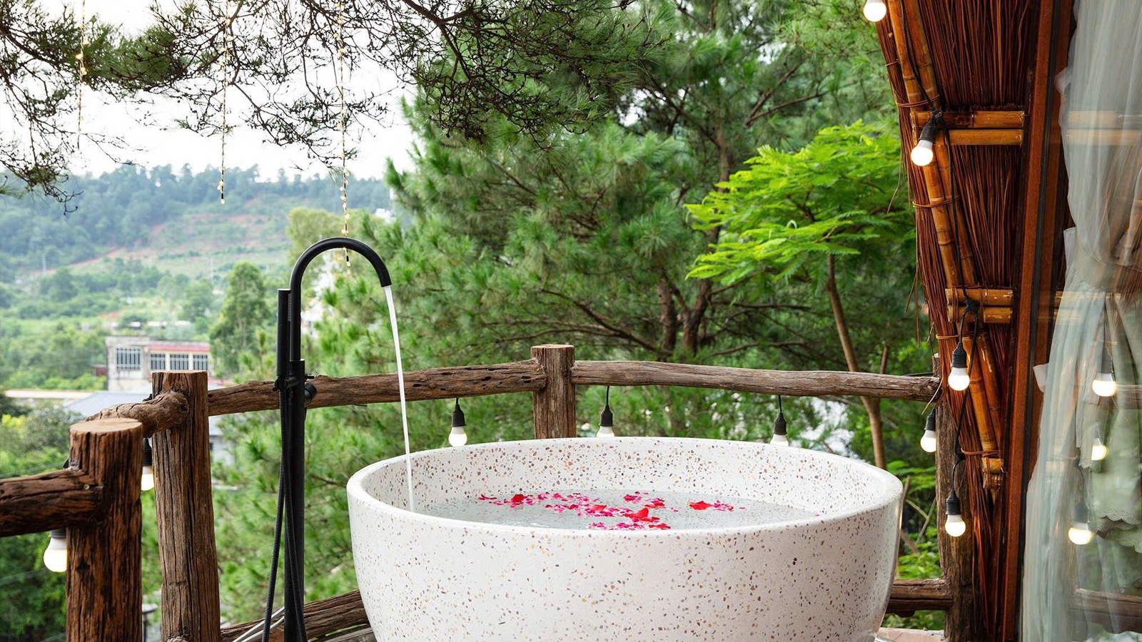 - Bồn tắm đá lộ thiên check in cháy máy với view cực mê.