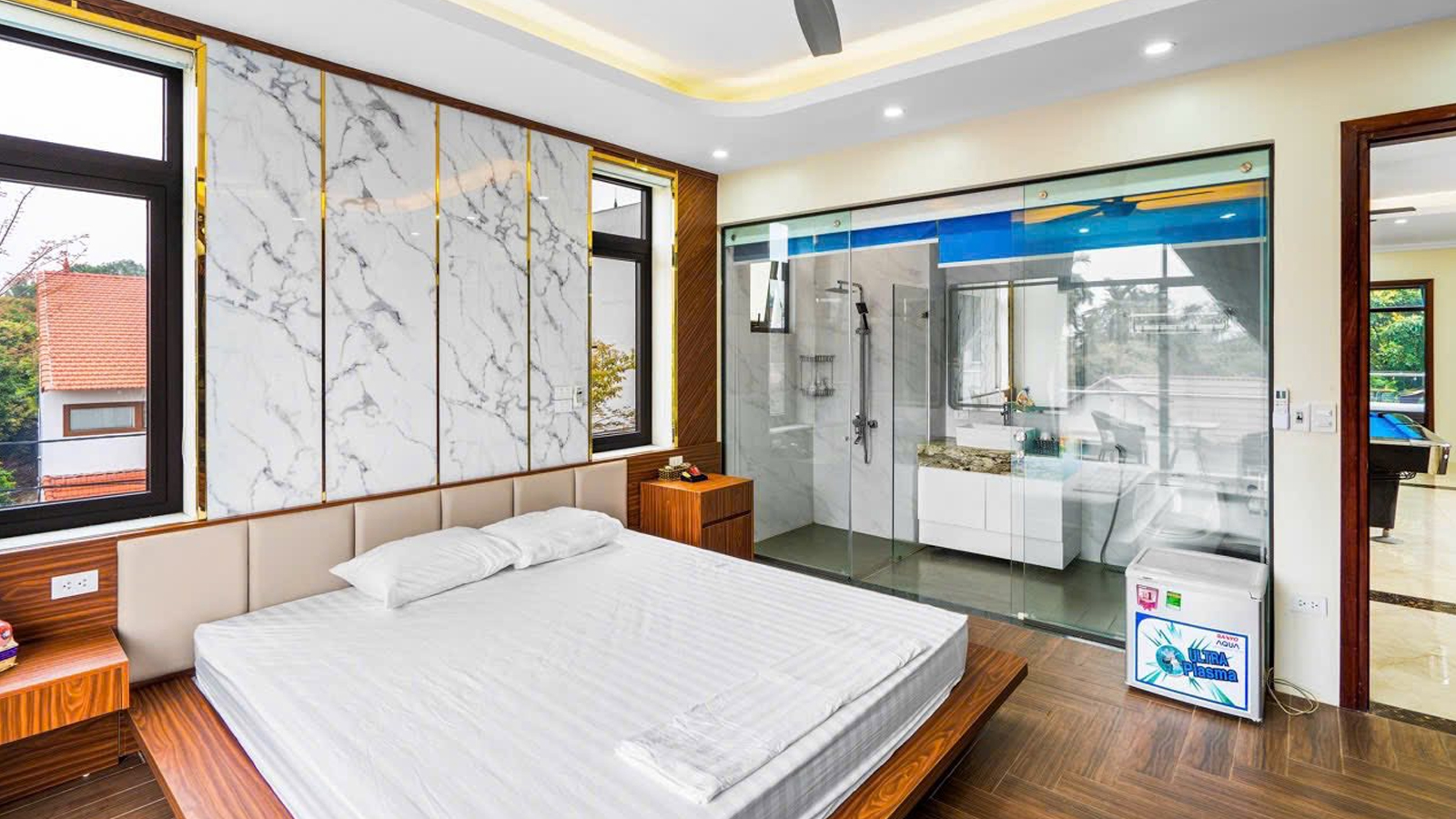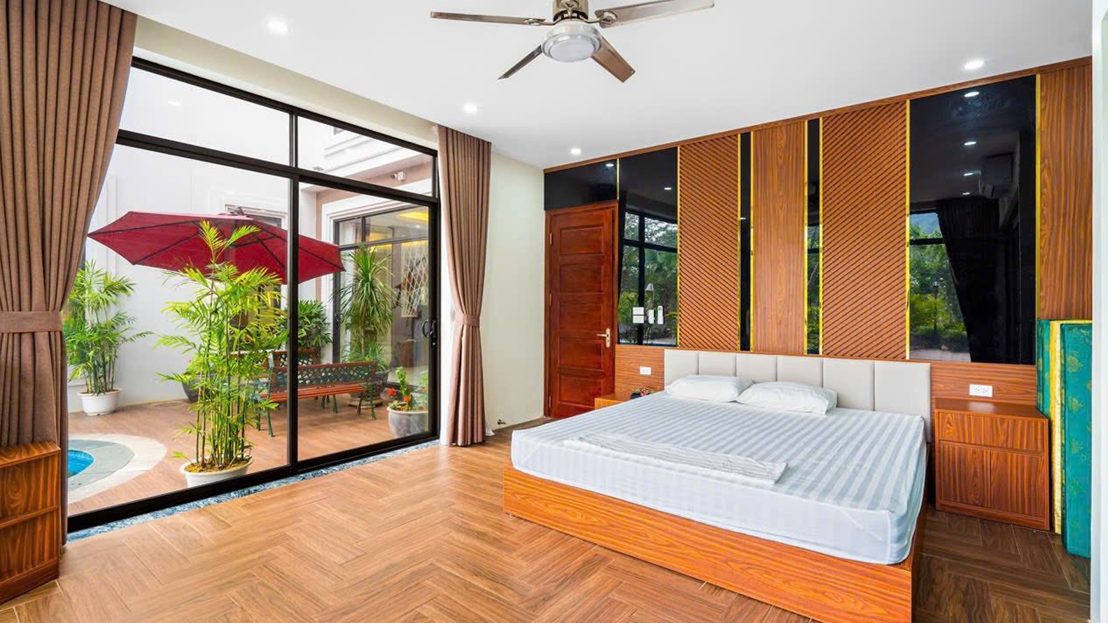 - Tầng 2 gồm 4 phòng ngủ, mỗi phòng được thiết kế với 1 giường đôi khép kín, có ban công riêng, và 1 ban công rộng phía bên ngoài